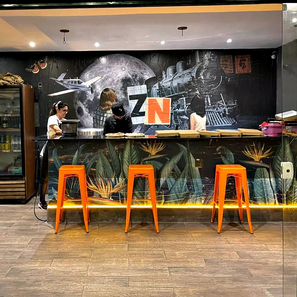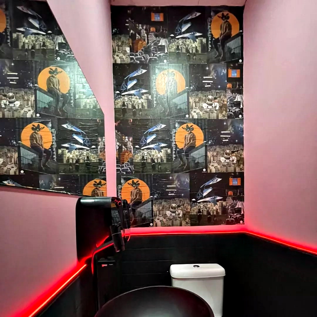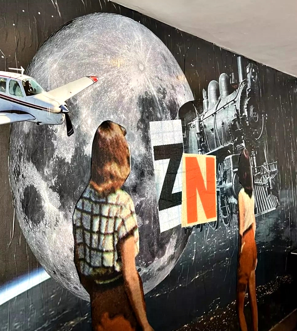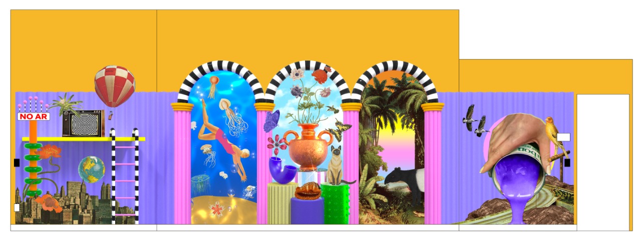 Produção em adesivo recortado, em sobreposição de colagem.